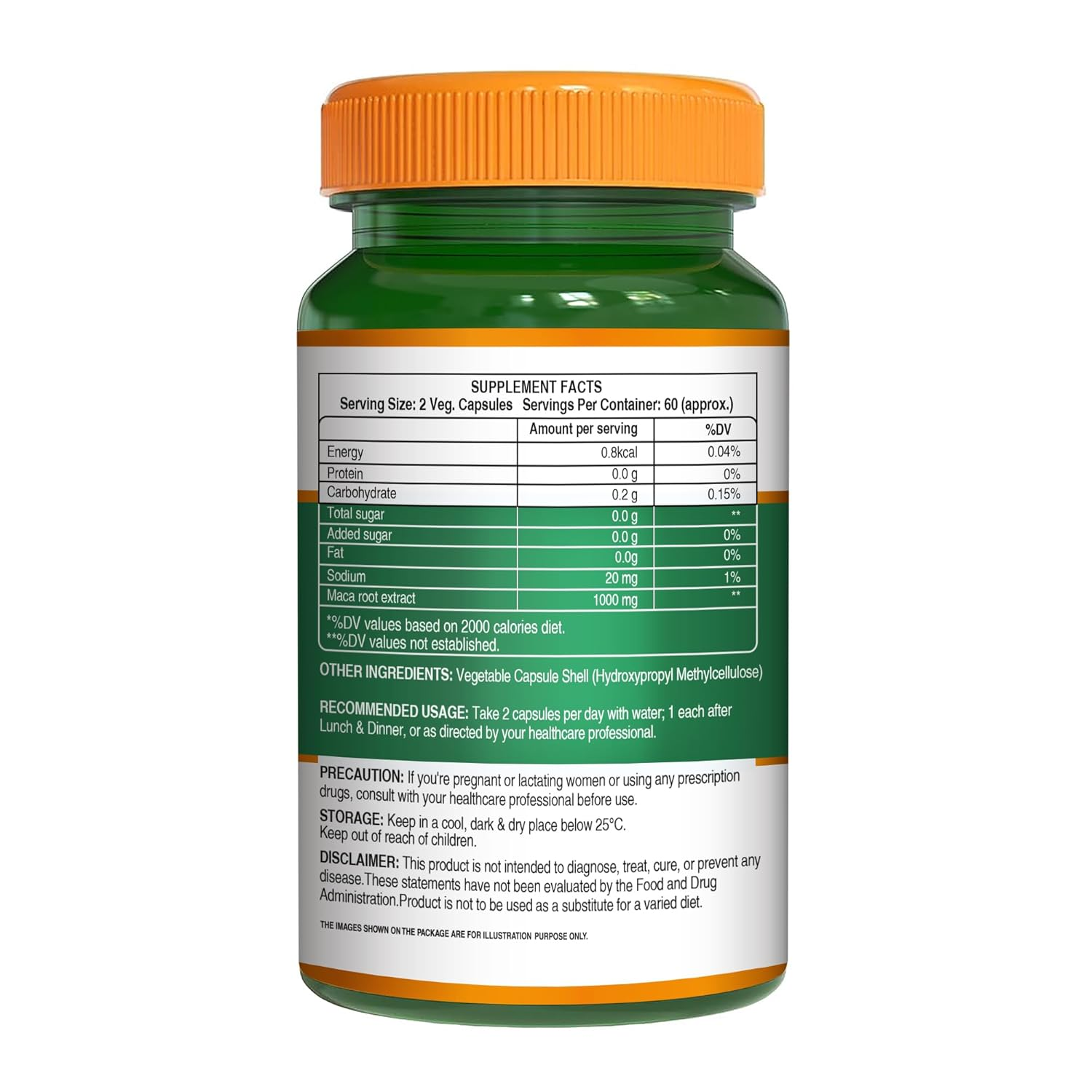 Pure Nutrition Maca Root 1000mg supports energy, stamina, hormonal balance, and mental clarity. A vegetarian, non-GMO wellness supplement ideal for both gender.